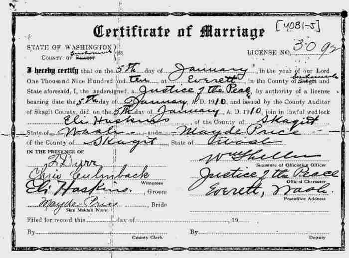 (2) Mayde J Price January 5, 1910 in Everett, Skagit County, Washington.