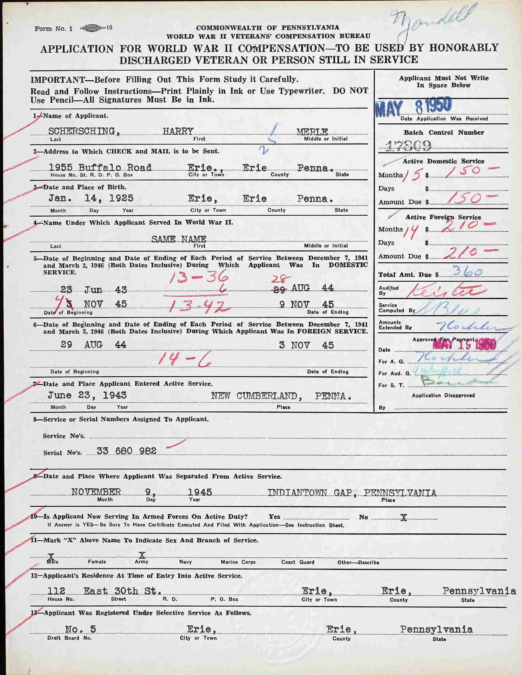 May 8, 1950 - 1955 Buffalo Road, Erie, Erie County, Pennsylvania.