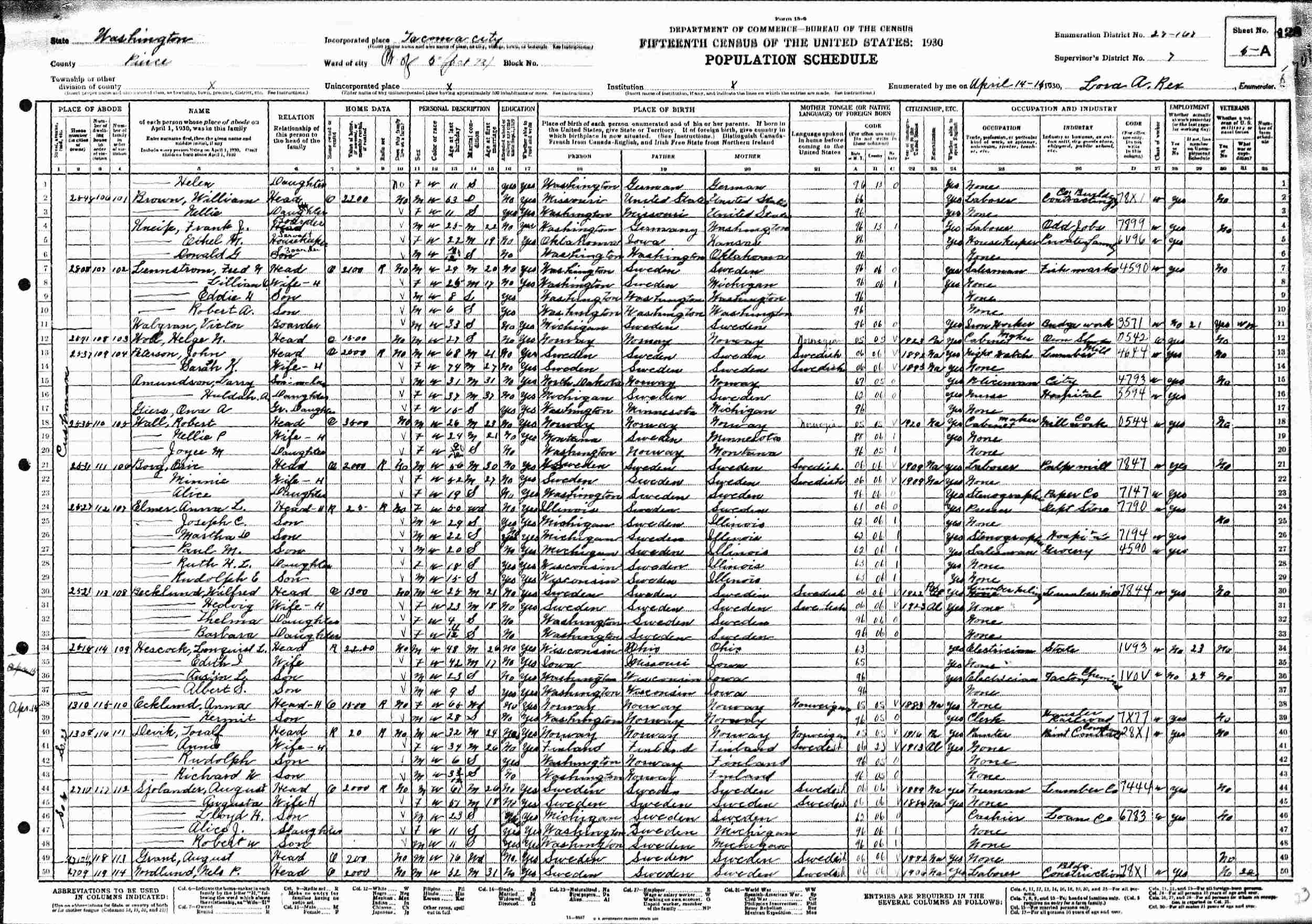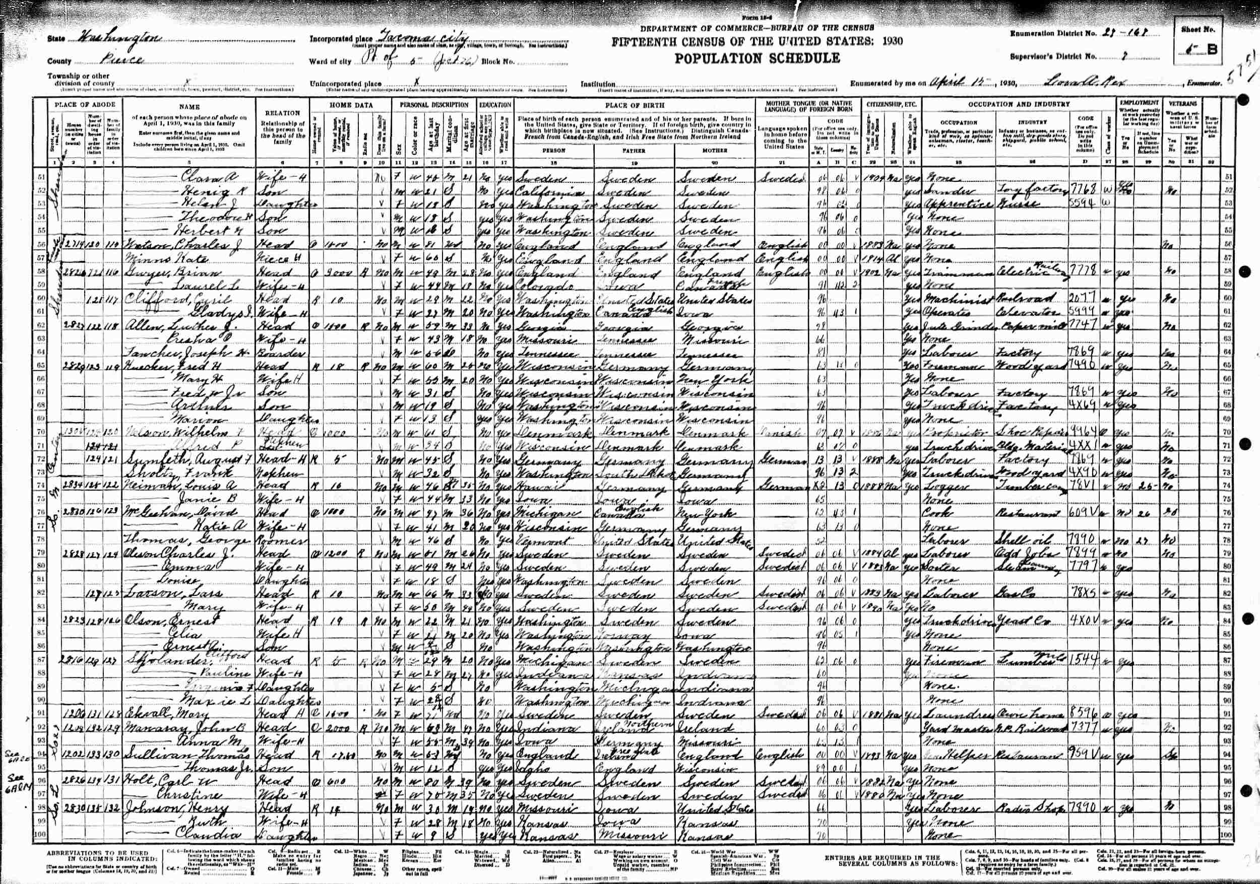 April 14-16, 1930 - 2809 Sheridan, Supervisor's District 7, Enumeration District 27-168, Tacoma, Pierce County, Washington.