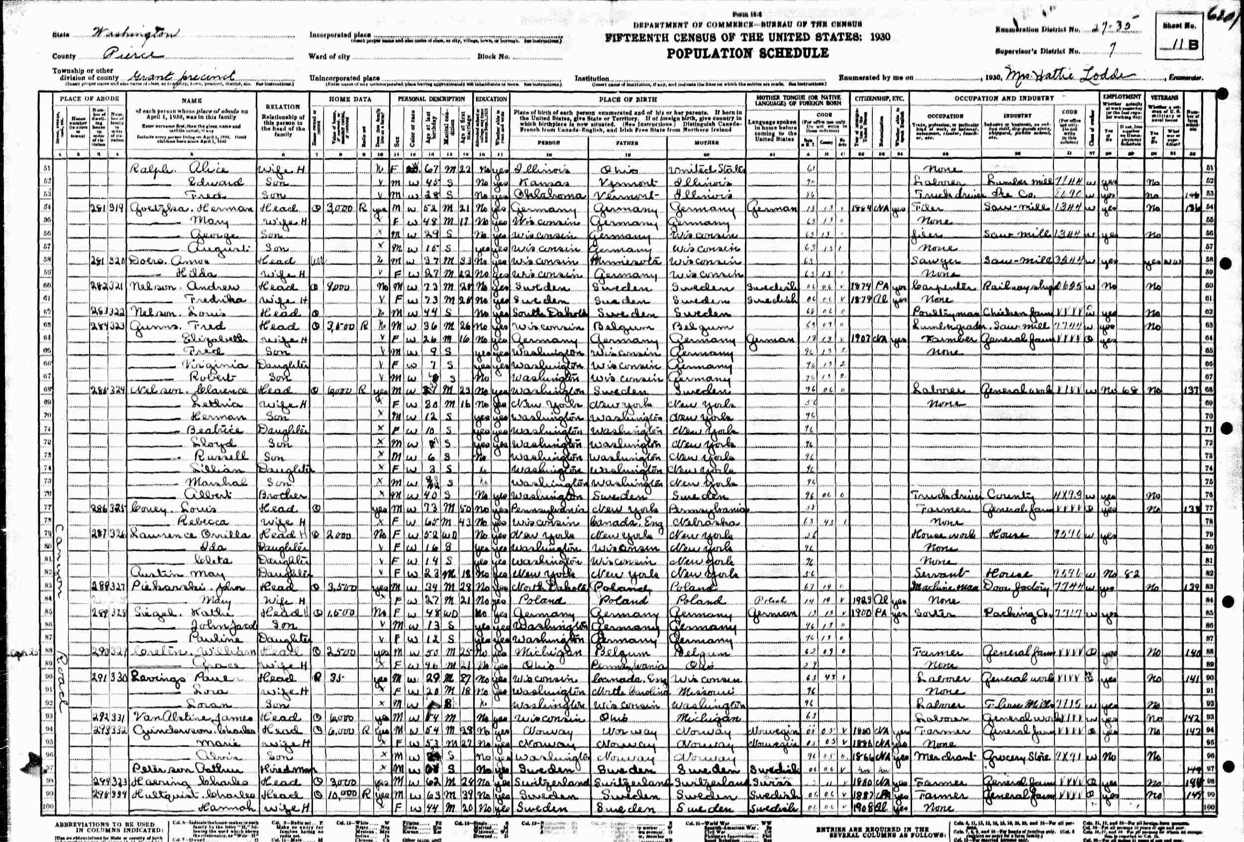 1930 - Canyon Road, Supervisor's District 7, Enumeration District 27-35, Grant, Pierce County, Tacoma.