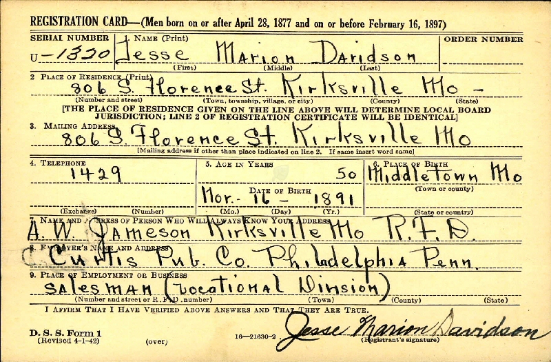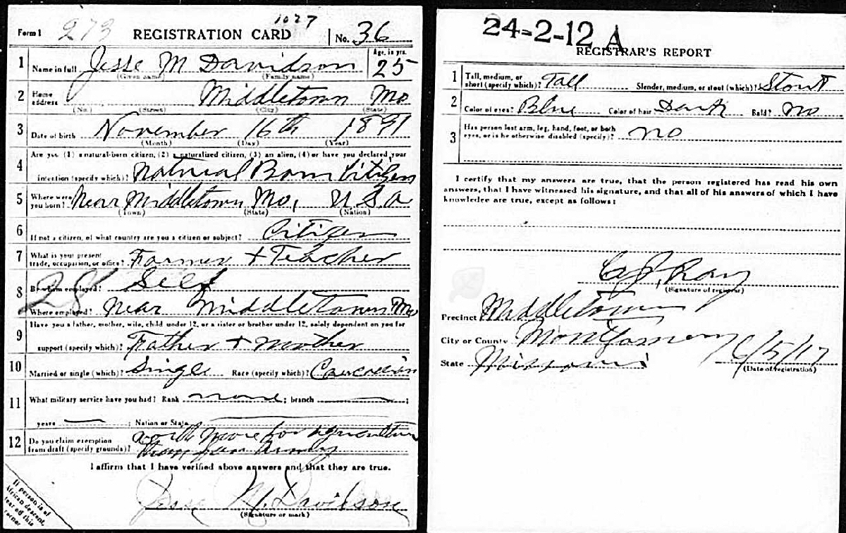 June 5, 1917 - Middletown, Montgomery County, Missouri.