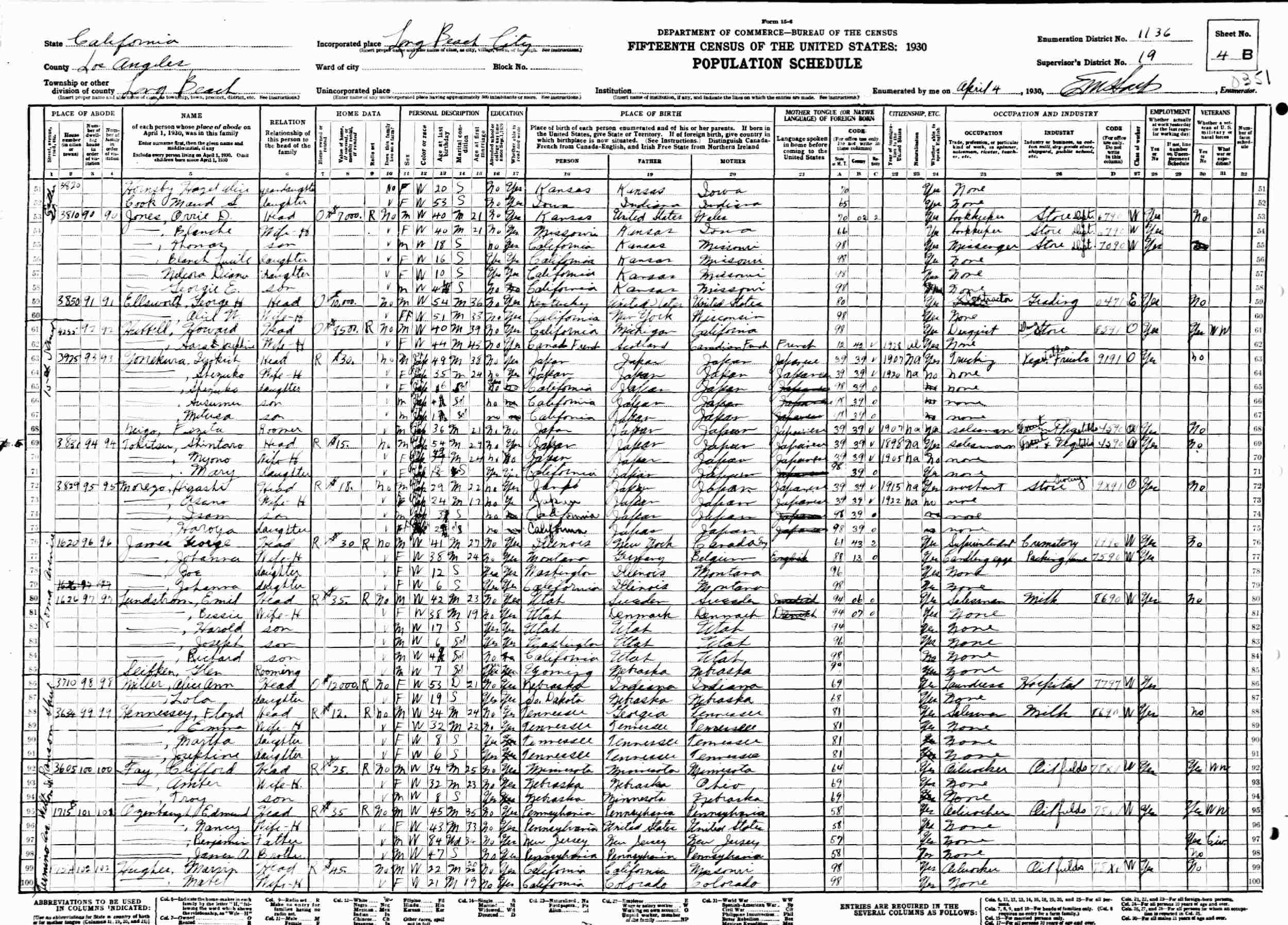 April 4, 1930 - 1626 Loma Avenue, Supervisor's District 19, Enumeration District 1136, Long Beach, Los Angeles County, California.