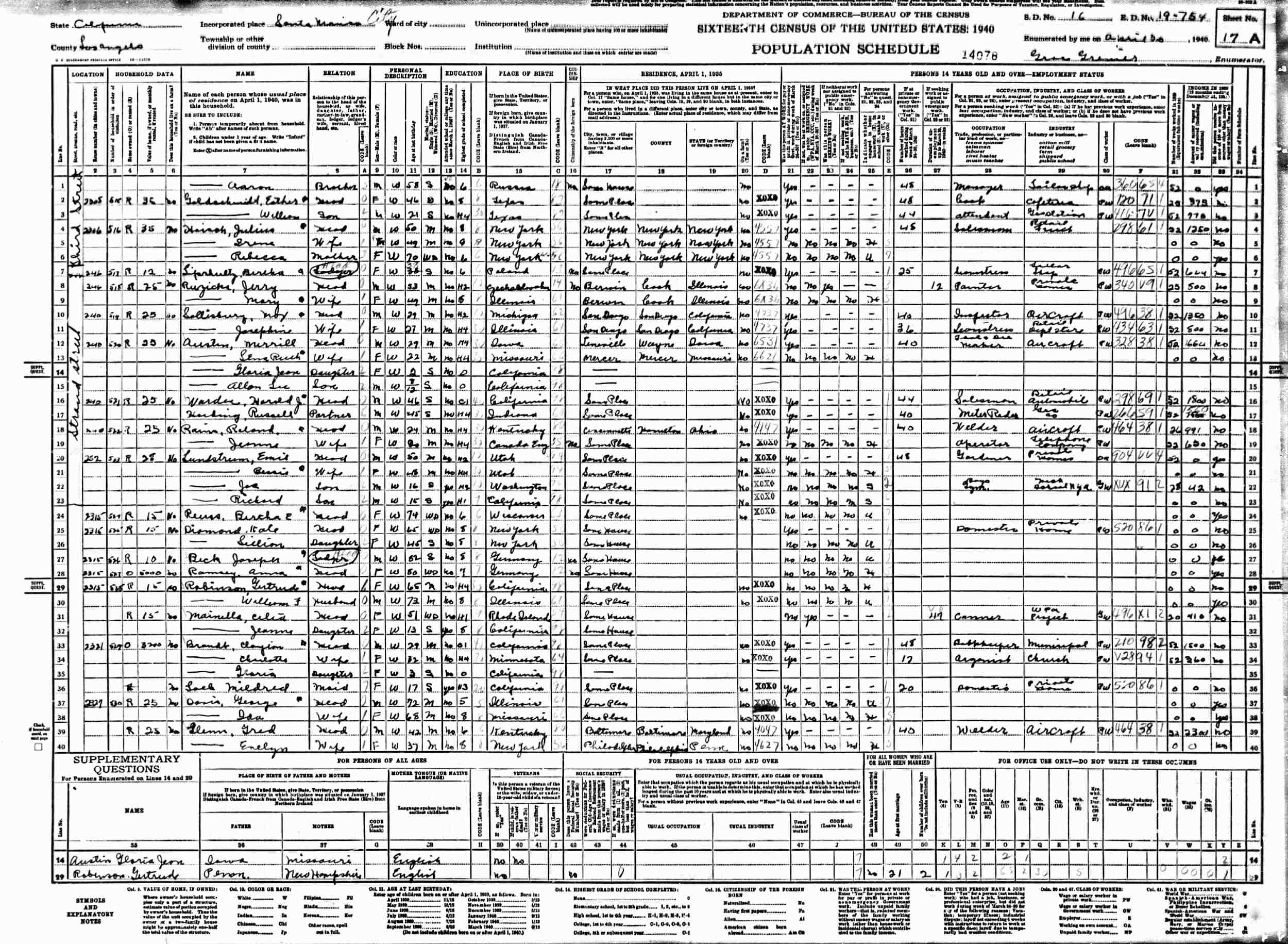 April 30, 1940 - 252 Strand Street, Supervisor's District 16, Enumeration District 19-754, Santa Monica, Los Angeles County, California.