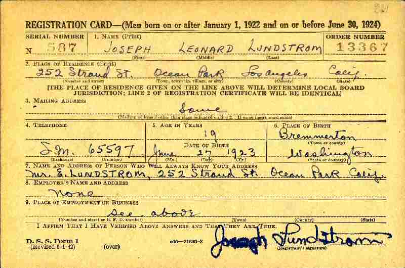 June 30, 1942 - 252 Strand Street, Ocean Park, Santa Monica, Los Angeles County, California.