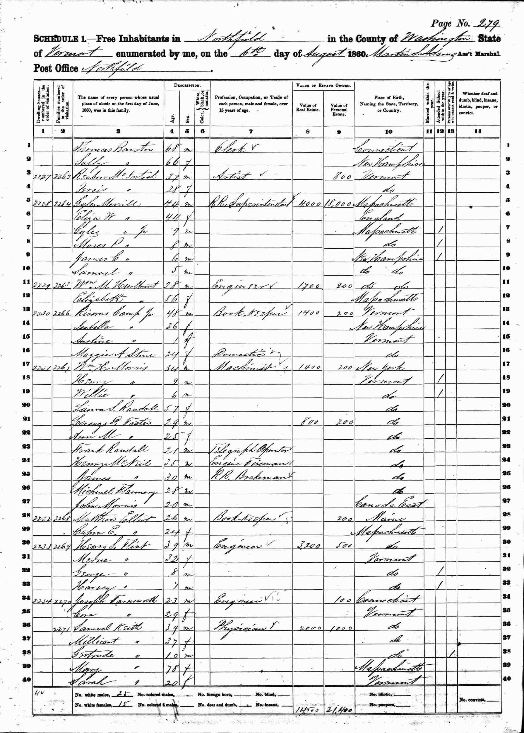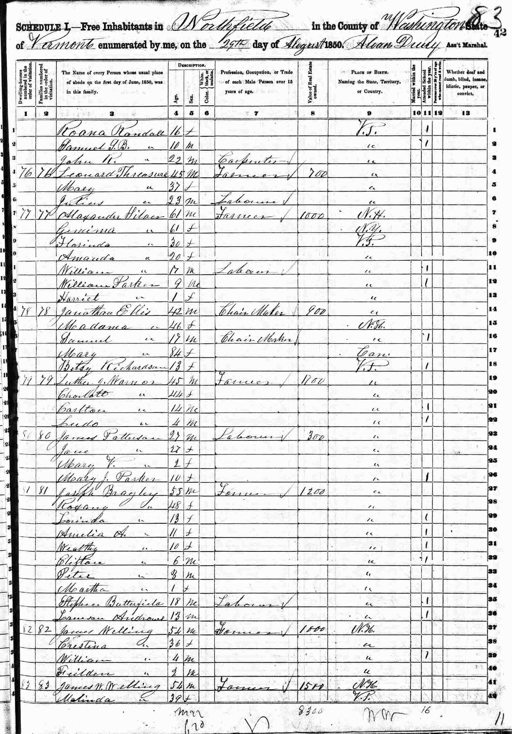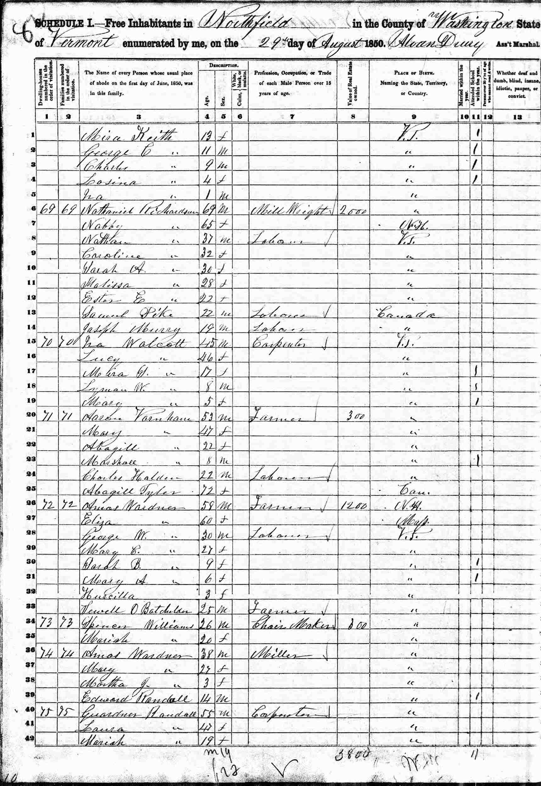 August 29, 1850 - Northfield, Washington County, Vermont