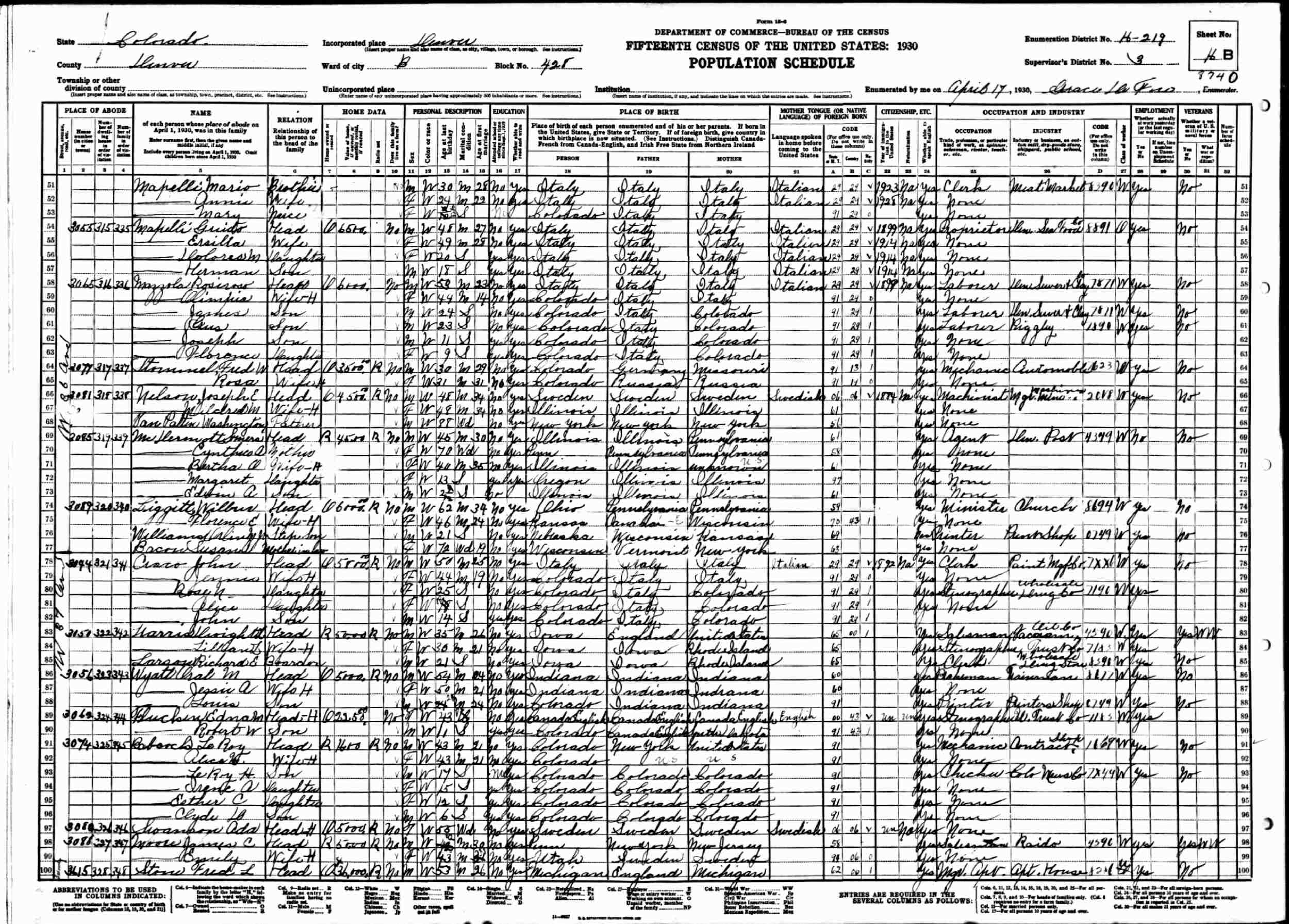 April 17, 1930 - 3074 W. 37th Avenue, Ward B, Block 428, Supervisor's District 3, Enumeration District 16-219, Denver, Denver County, Colorado.