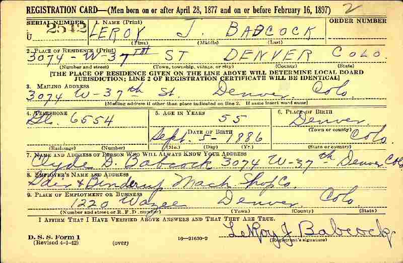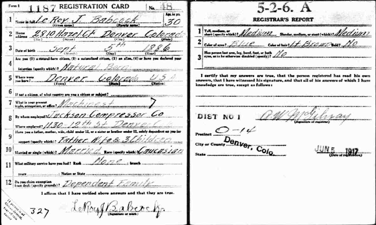 Notes for LEROY JAMES BABCOCK: