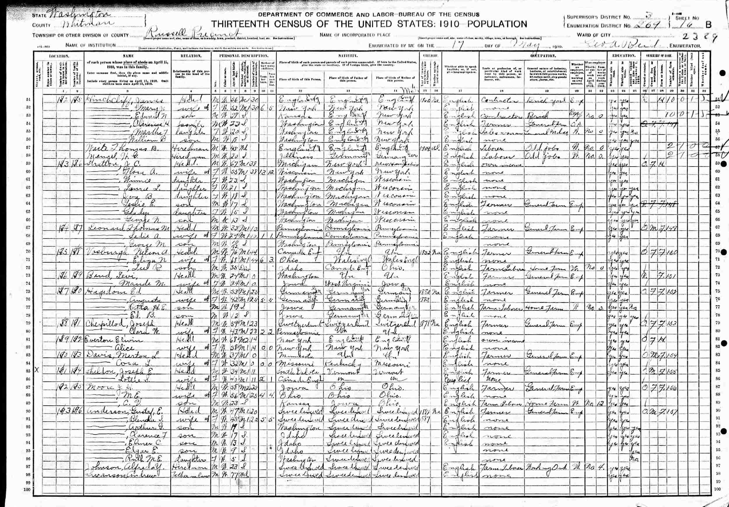 May 17, 1910 - Supervisor's District 3, Enumeration District 269, Russell Precinct, Whitman County, Washington.
