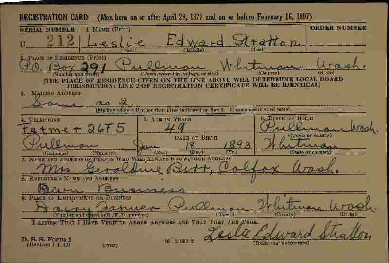 Born: January 18, 1893 in Pullman, Whitman County, Washington.