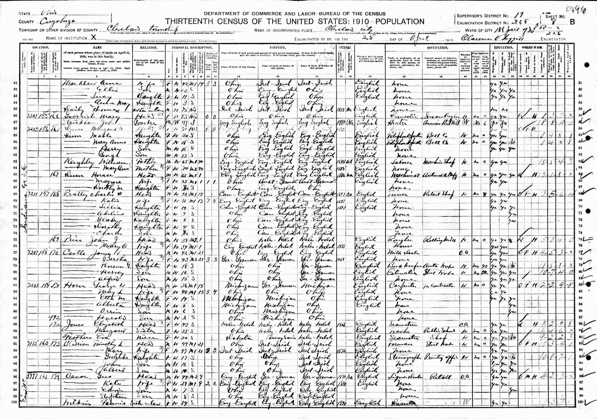 April 25, 1910 - 7211 Indiana Street SE, Ward 18, Supervisor's District 19, Enumertion District 268, Cleveland, Cuyahoga County, Ohio.