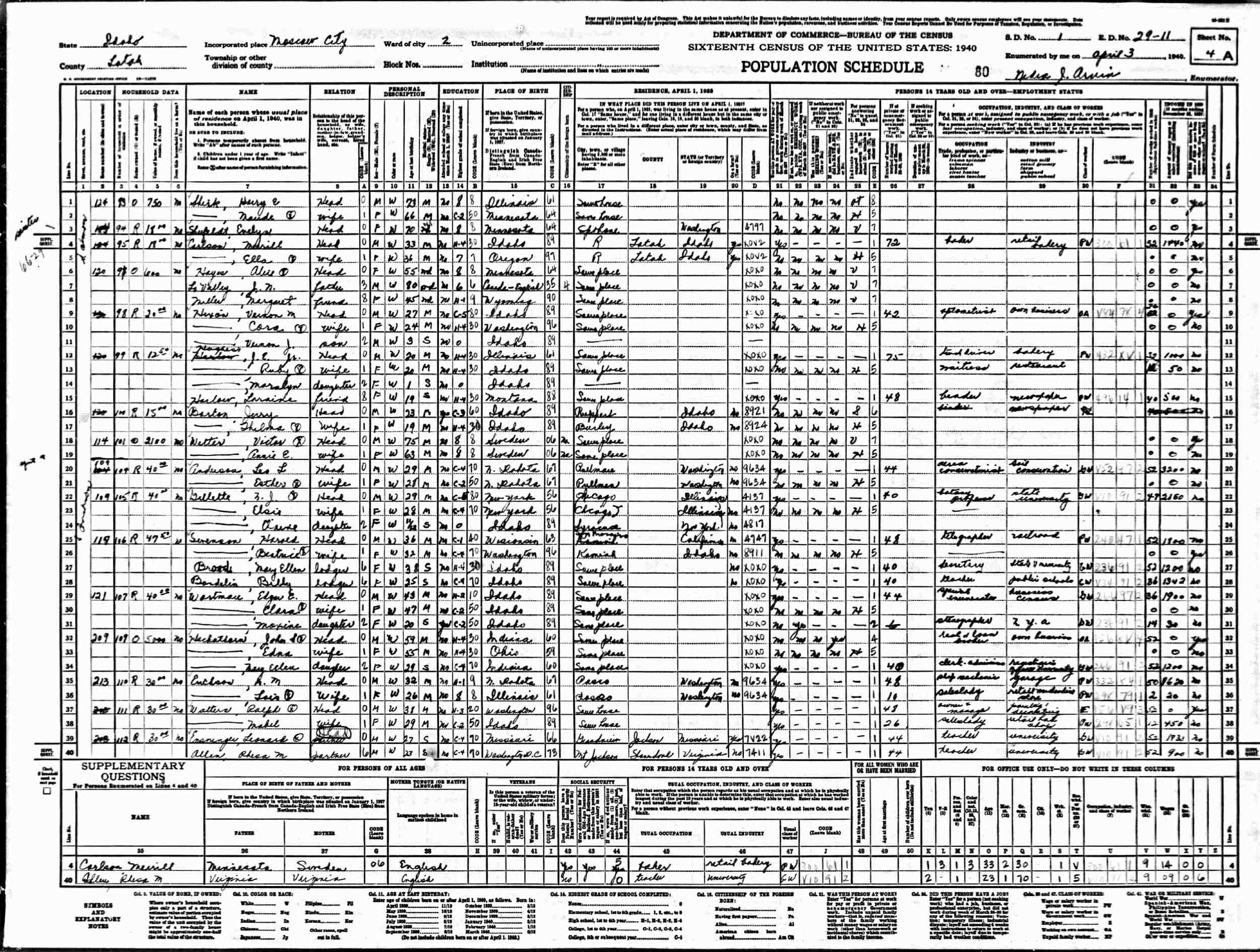 Married: Harold Henry Hofmann September 2, 1940 in Moscow, Latah County, Idaho.