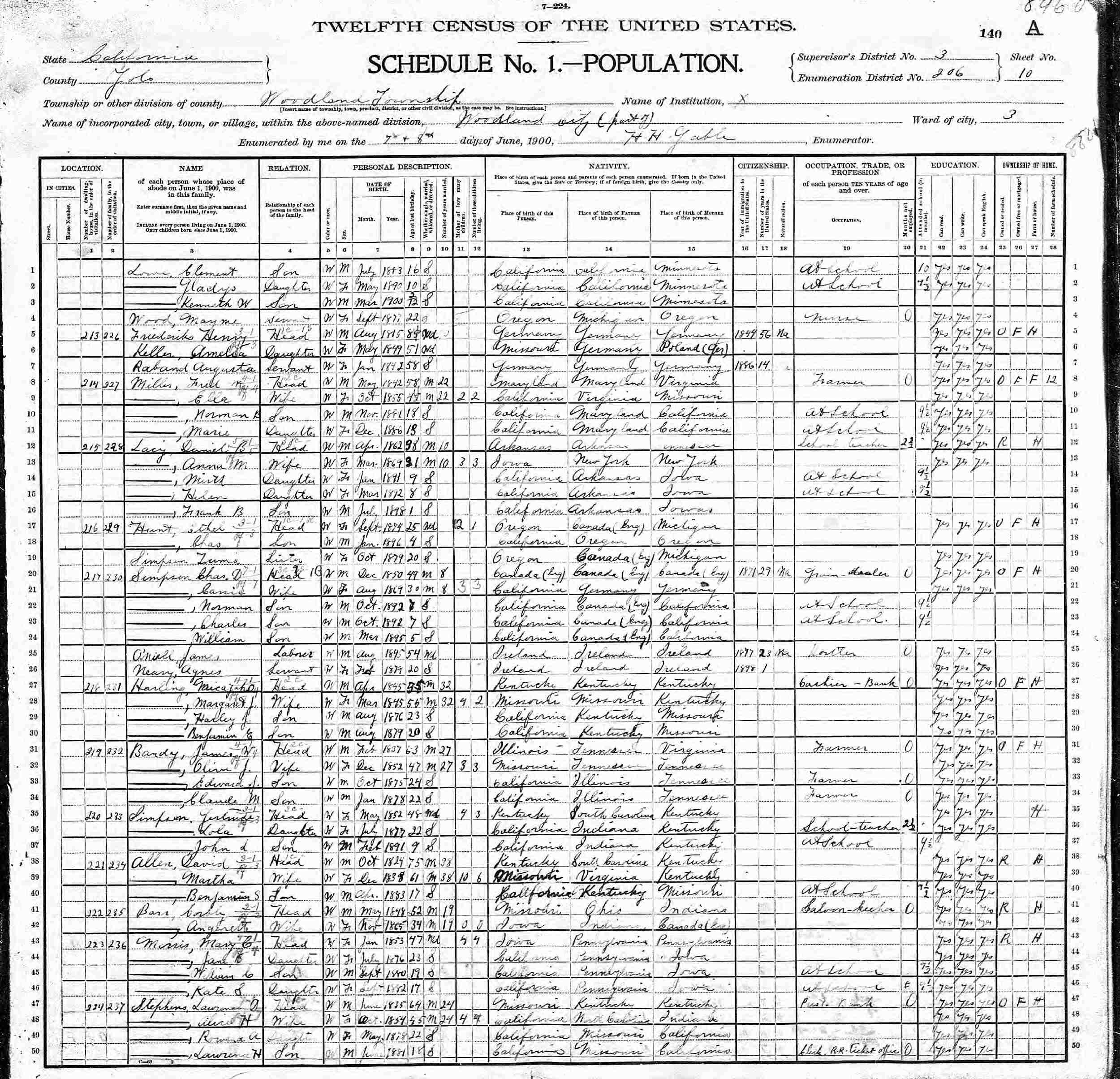 June 7-8, 1900 - Supervisor's District 3, Enumeration District 206, Woodland, Yolo County, California.