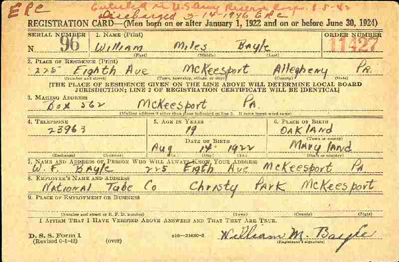Born: August 14, 1922 in Oakland, Garrett County, Maryland.