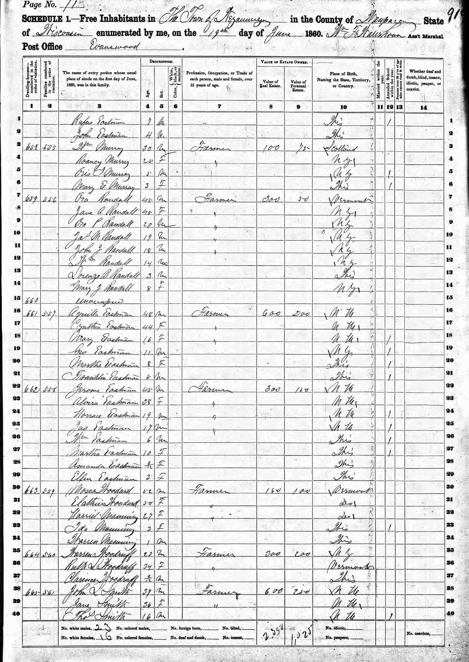 June 19, 1860 - Weyauwega, Waupaca County, Wisconsin.
