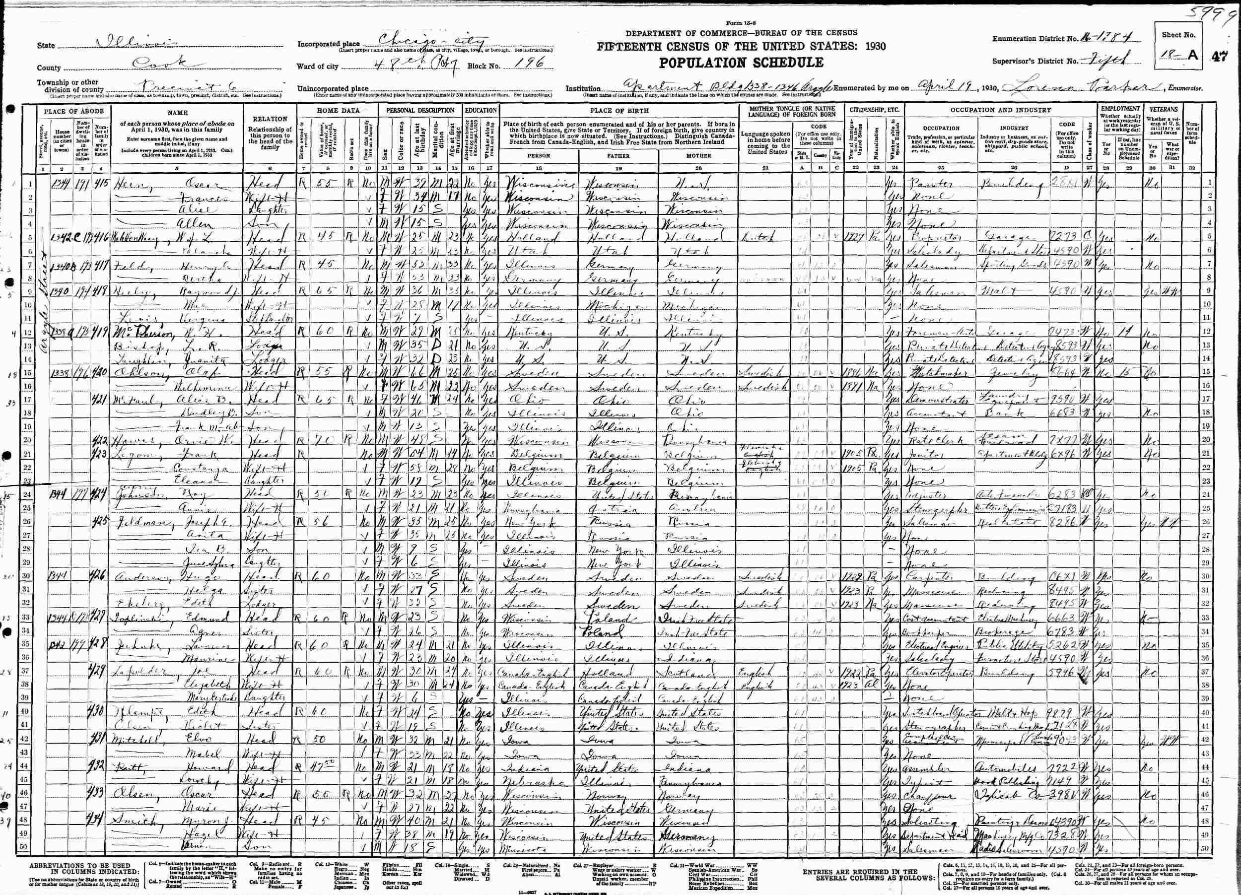 April 19, 1930 - Apartment Building 1338-1346 Aragle, Ward 48, Precinct 6, Block 196, Supervisor's Districct 5, Enumeration District 16-1784, Chicago, Cook County, Chicago.