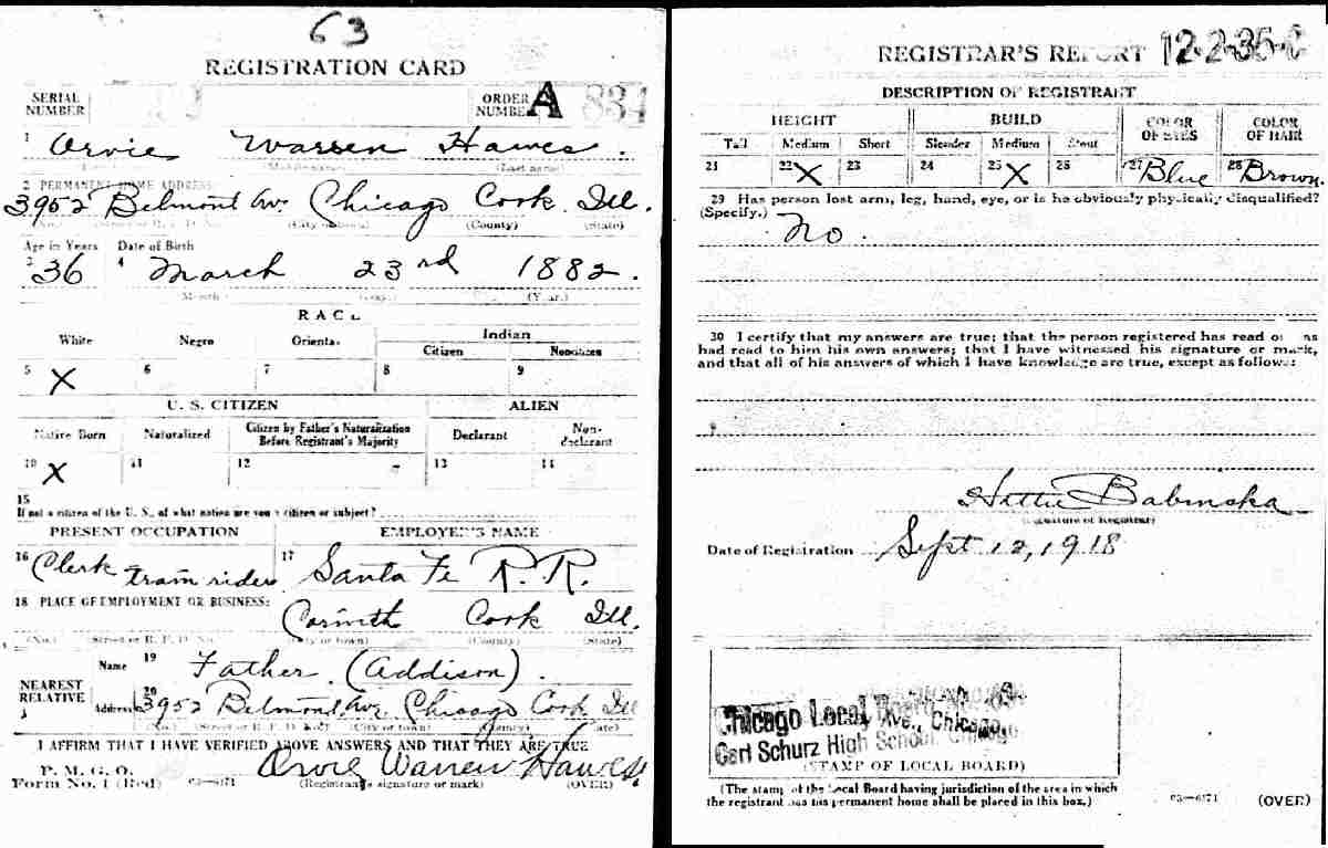 September 12, 1918 - 3952 Belmont Avenue, Chicago, Cook County, Illinois.