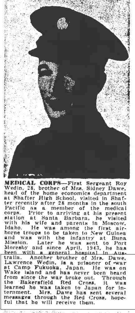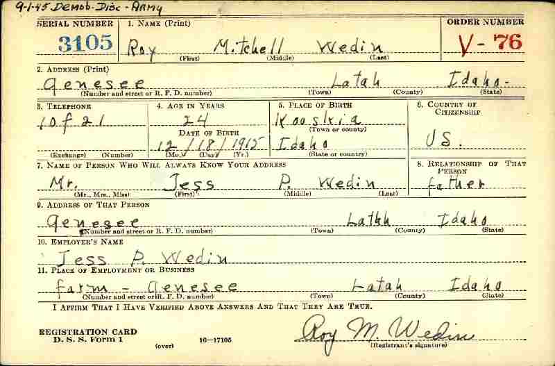 Notes for ROY MITCHELL WEDIN:
