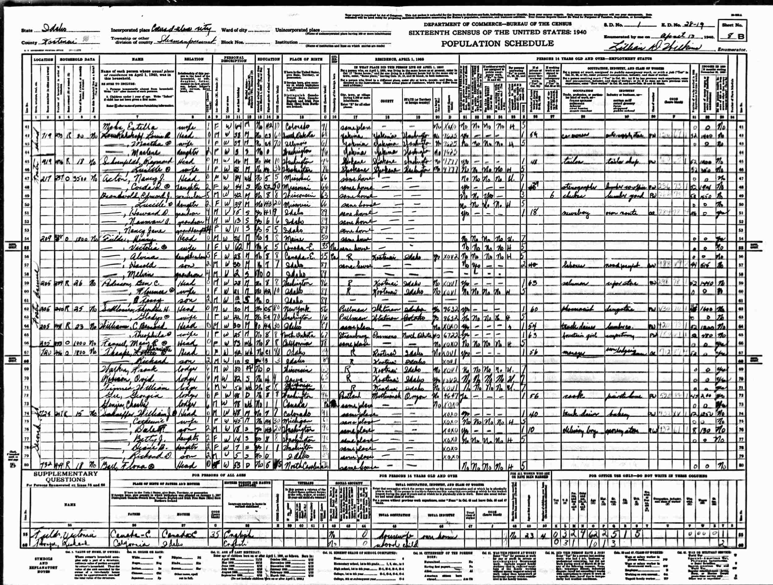 April 13, 1940 - 205 Foster Avenue, Supervisor's District 1, Enumeration District 28-19, Sherman Precinct, Coeur D'alene, Kootenai County, Idaho.