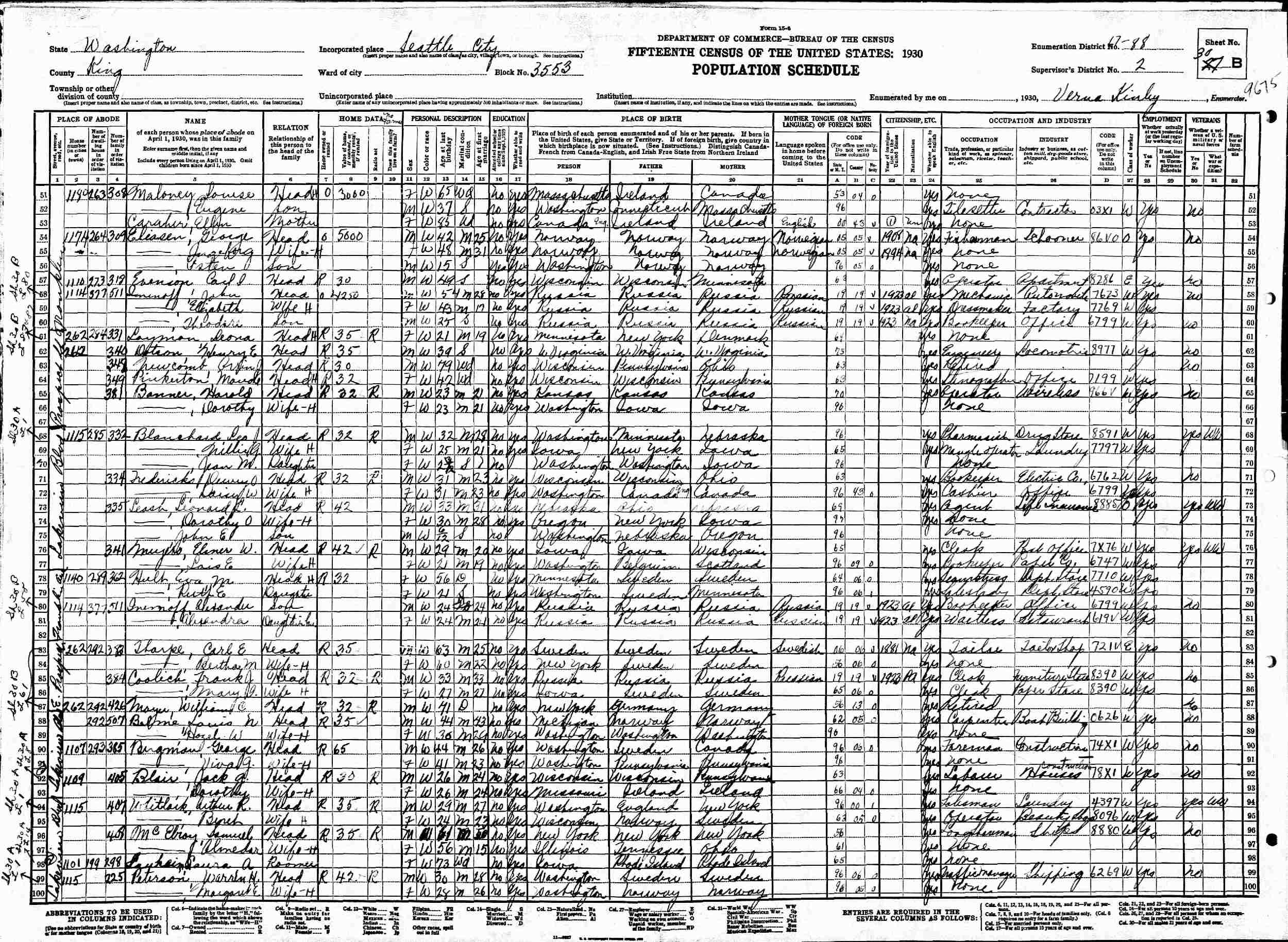 1930 - 1107 Lakeview Place, Block 3553, Supervisor's District 2, Enumeration District 17-88, Seattle, King County, Washington.
