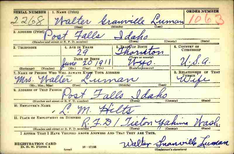 Notes for WALTER GRANVILLE LUMAN: