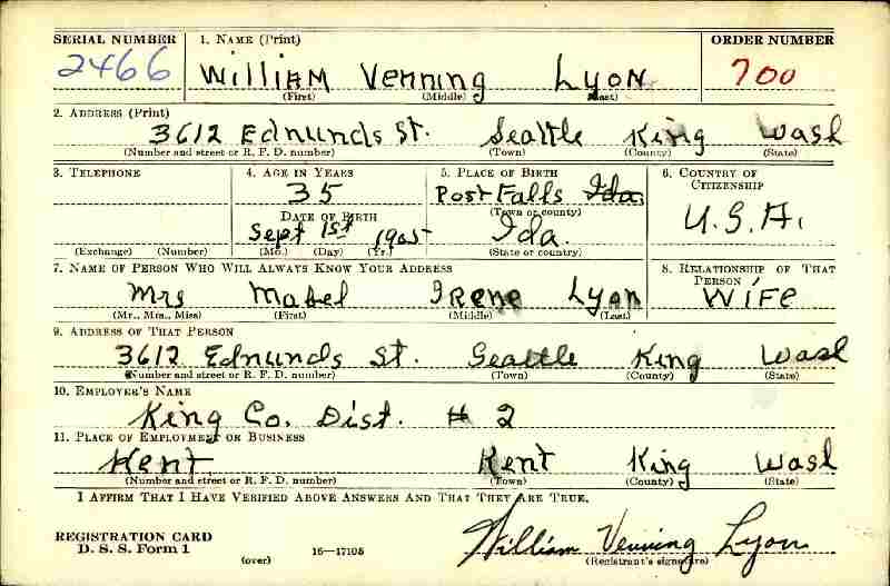 Married: Mabel Irene Maudlin November 19, 1929 in Seattle, King County, Washington. (Divorce: January 2, 1969 in King County, Washington.)