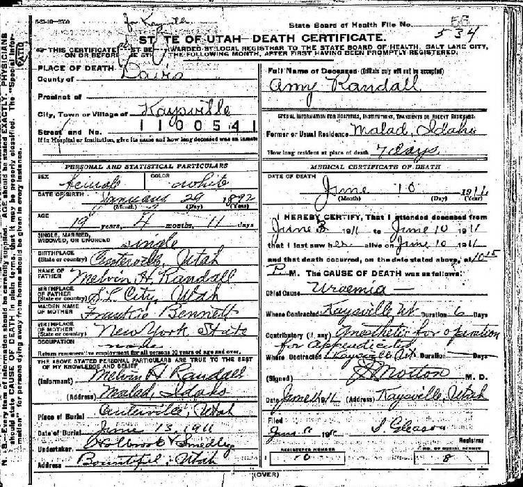 Died: June 10, 1911 in Centerville, Davis County, Utah.