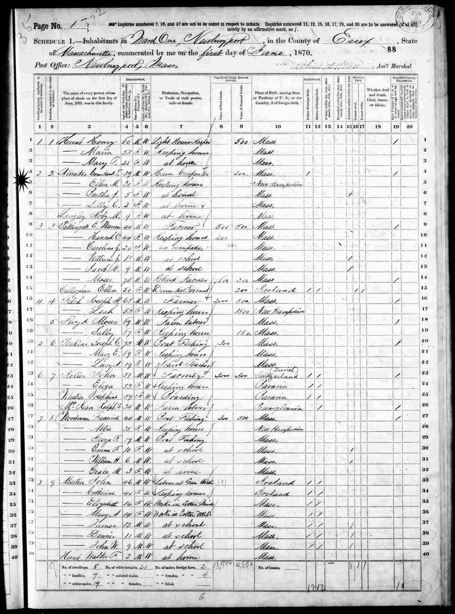 June 1, 1870 - Ward 1, Newburyport, Essex County, Massachusetts