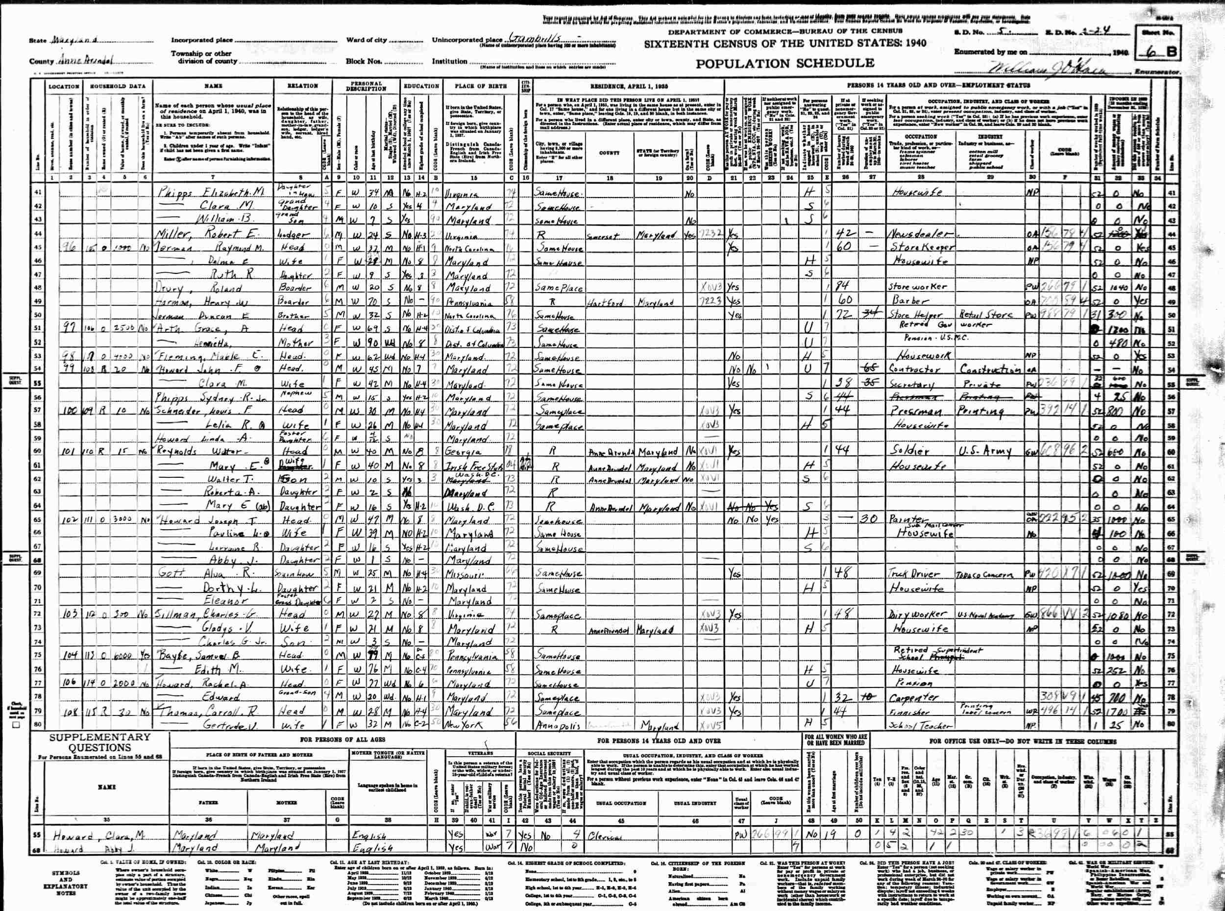 1940 - Supervisor's District 5, Enumeration District 2-24, Gambills, Anne Arendal County, Maryland.