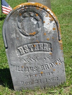 In Brookfield, N. Y., Dec. 24th, 1863, very suddenly, of organic disease of the heart, Mrs. Esther Brown, aged 72 years and 7 months. The deceased was an amiable Christian, and a member of the Baptist Church. A large family circle mourn her loss, and the community in which she lived, sympathize with them. But we feel that our loss is her eternal gain.