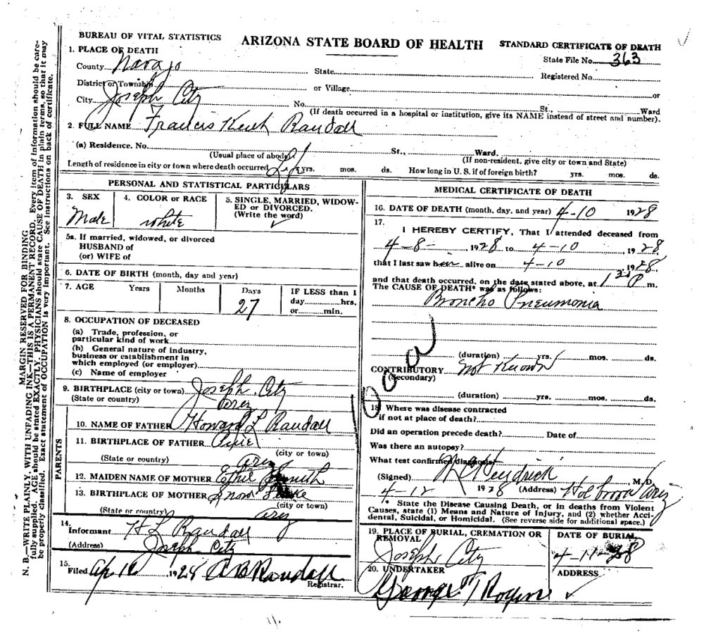 Died: April 10, 1928 in Joseph City, Navajo County, Arizona.