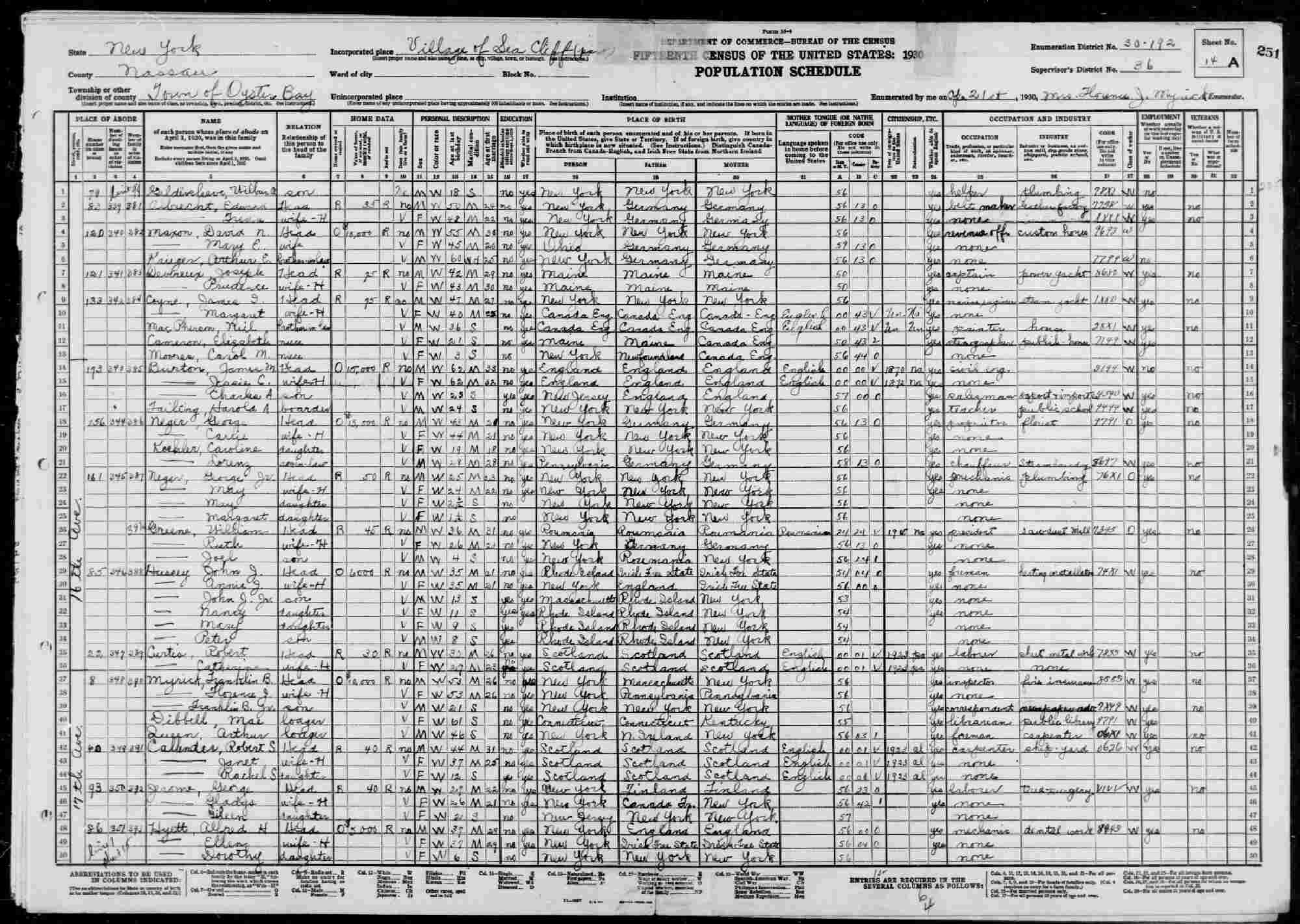 Census: April 21, 1930 - Seacliff Village, Nassau County, Long Island, New York.