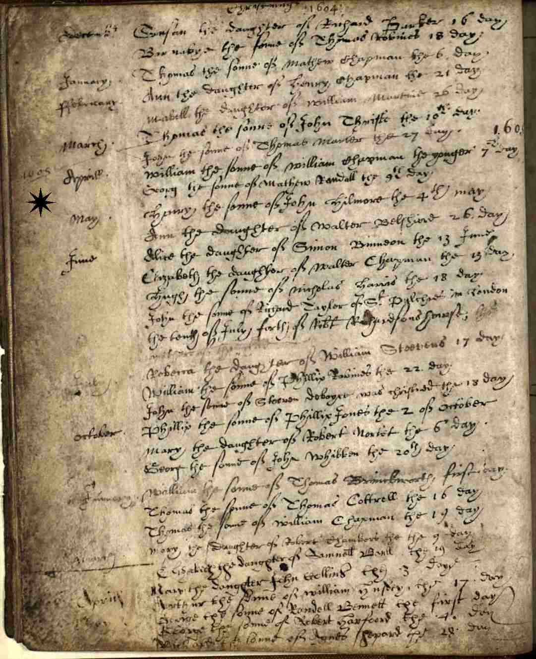 Notes for GEORGE RANDALL: Son of Matthew and Agnes (Cullen) Randall. Born: Before April 9, 1605 in Bath, Somerset, England. Bath April 9, 1605 in Bath Abbey, Bath, Somerset, England. Died: About October 24, 1605 in Bath, Somerset, England.