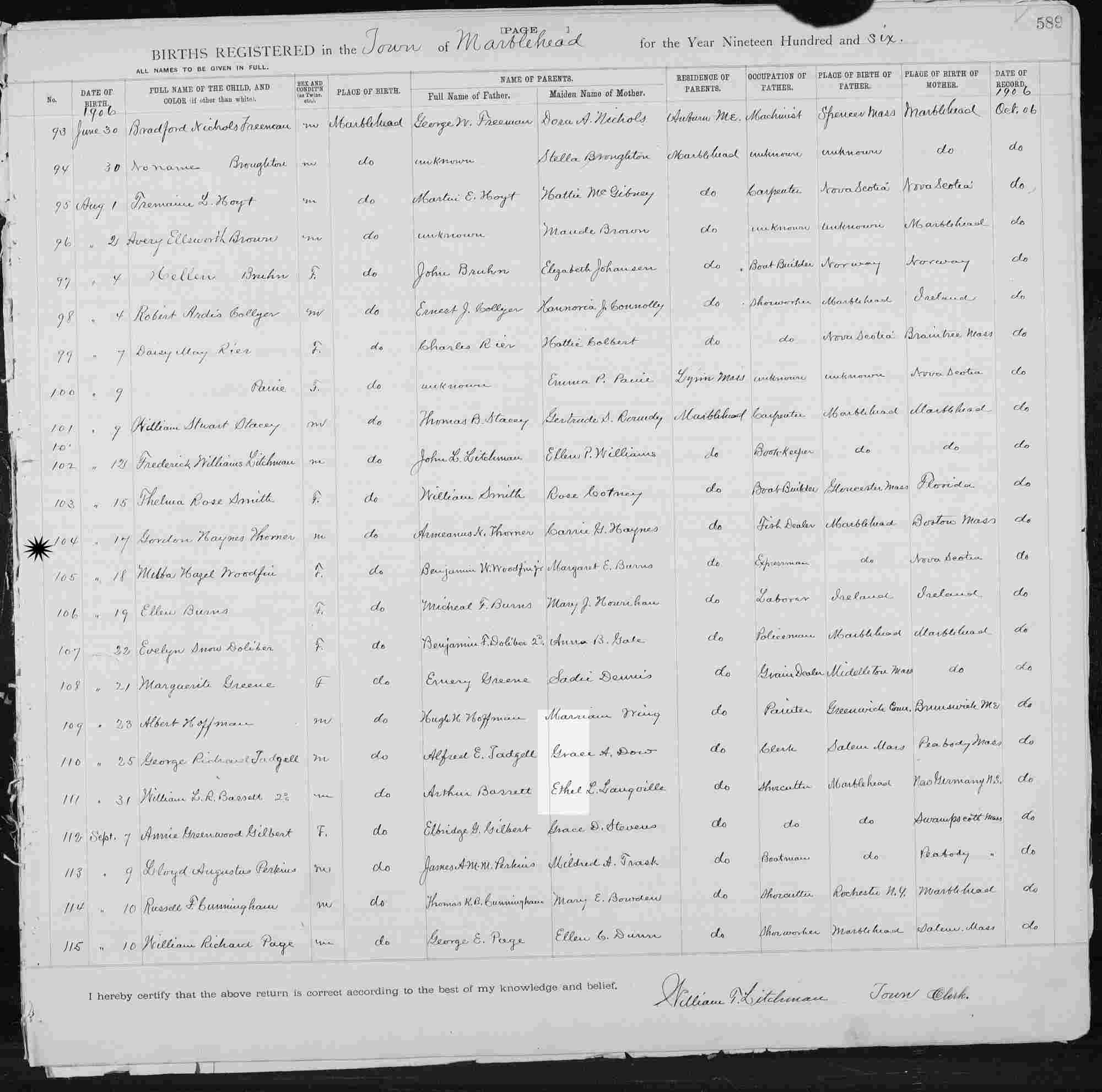 Notes for GORDON HAYNES THORNER: Son of Armeanus H and Caroline "Carrie" Grate (Haynes) Thorner. Born: July 18, 1906 in Marblehead, Essex County, Massachusetts. Died: October 14, 1985 in Marblehead, Essex County, Massachusetts.