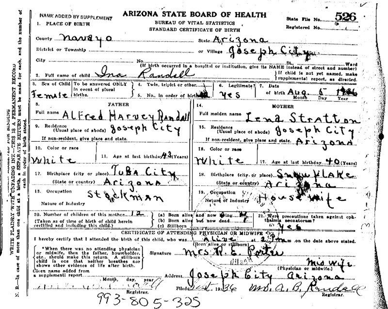 Born: August 5, 1936 in Joseph City, Navajo County, Arizona.