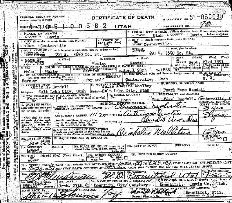 Died: September 23, 1951 in Centerville, Davis County, Utah.