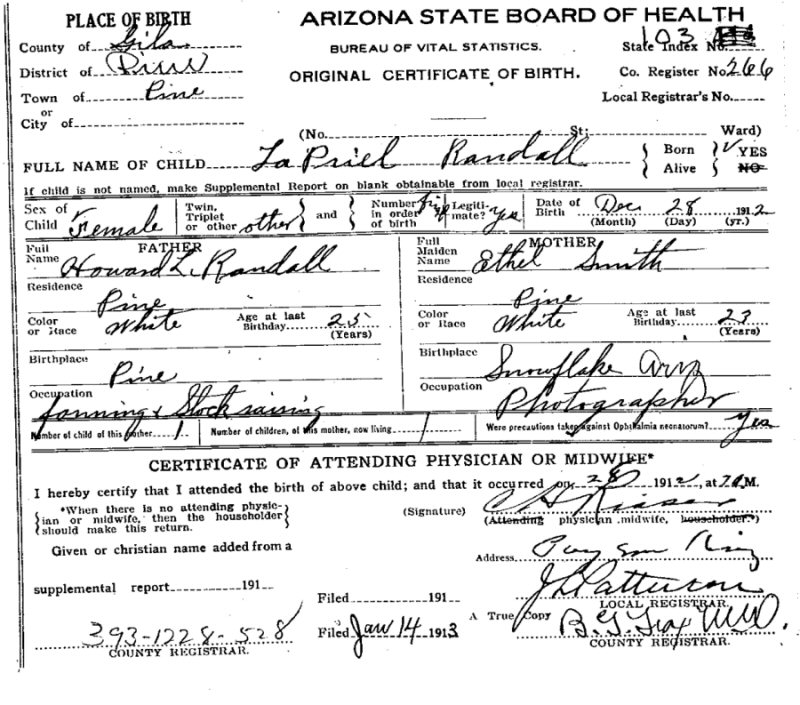 Born: December 28, 1912 in Pine, Gila County, Arizona.