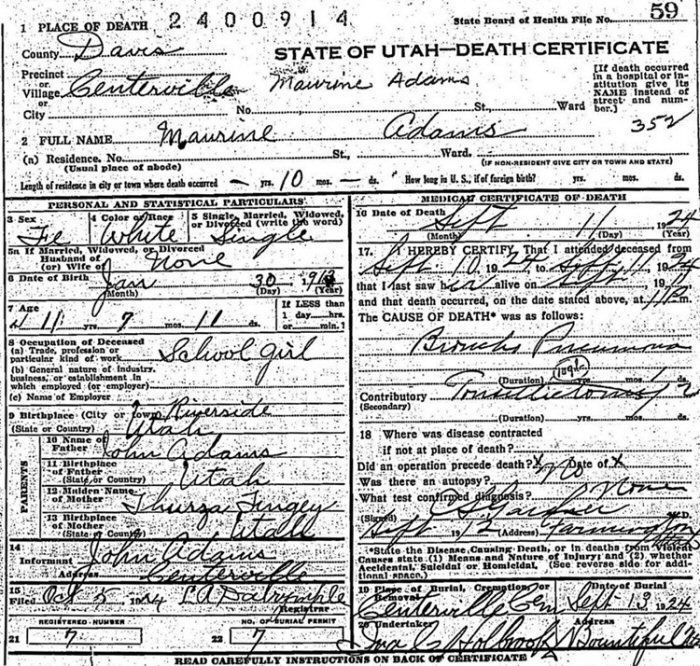 Died: September 10, 1924 in Centerville, Davis County, Utah.