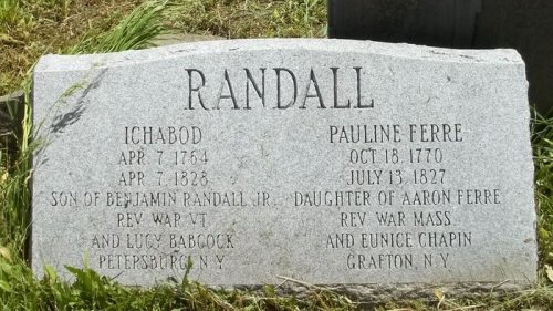 Her sister, Sabrina, married Ichabod's uncle, David Benjamin Randall, Jr.