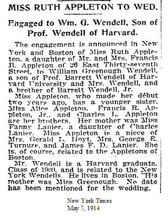 Notes for RUTH APPLETON WENDELL: