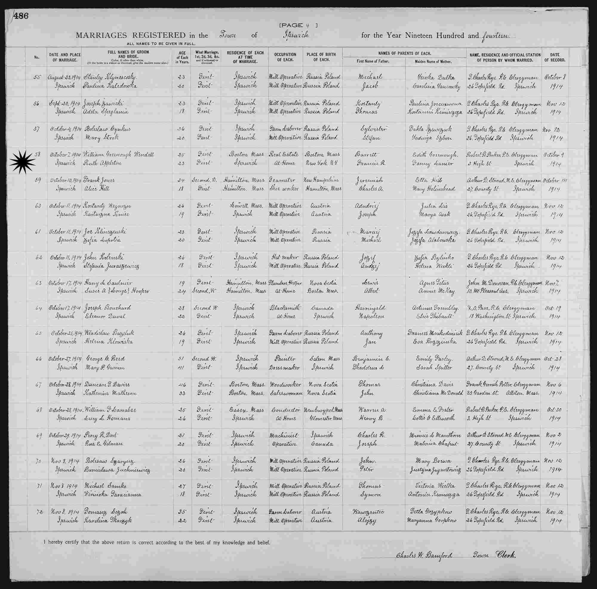 Married: William G Wendell October 7, 1914 in Ipswich, Essex County, Massachusetts.