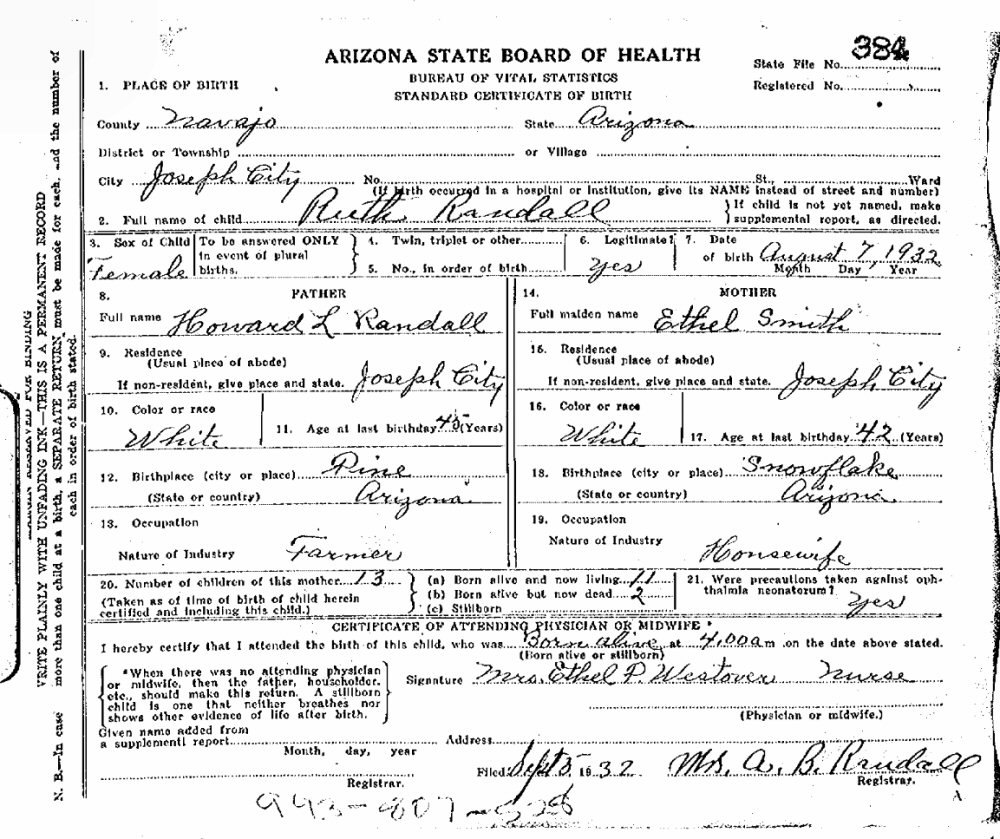 Born:August 7, 1932 in Joseph City, Navajo County, Arizona.