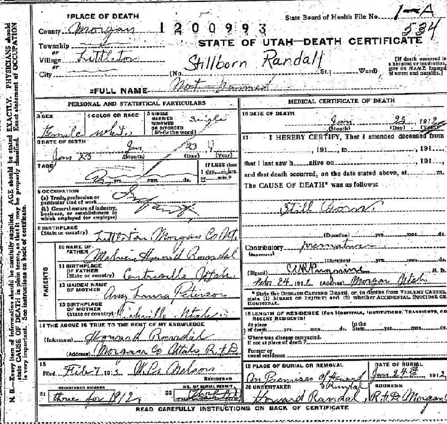 Died: January 23, 1912 in Littleton, Morgan County, Utah.