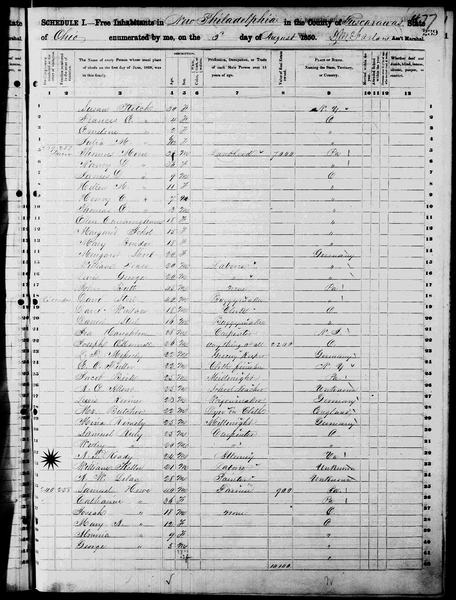 1850 - New Philadelphia, Tuscarwarus County, Ohio.