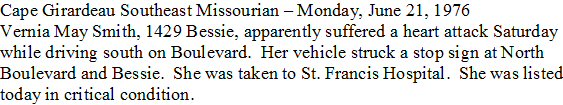 Died: June 27, 1967 in Cape Girardeau, Cape Girardeau County, Missouri.