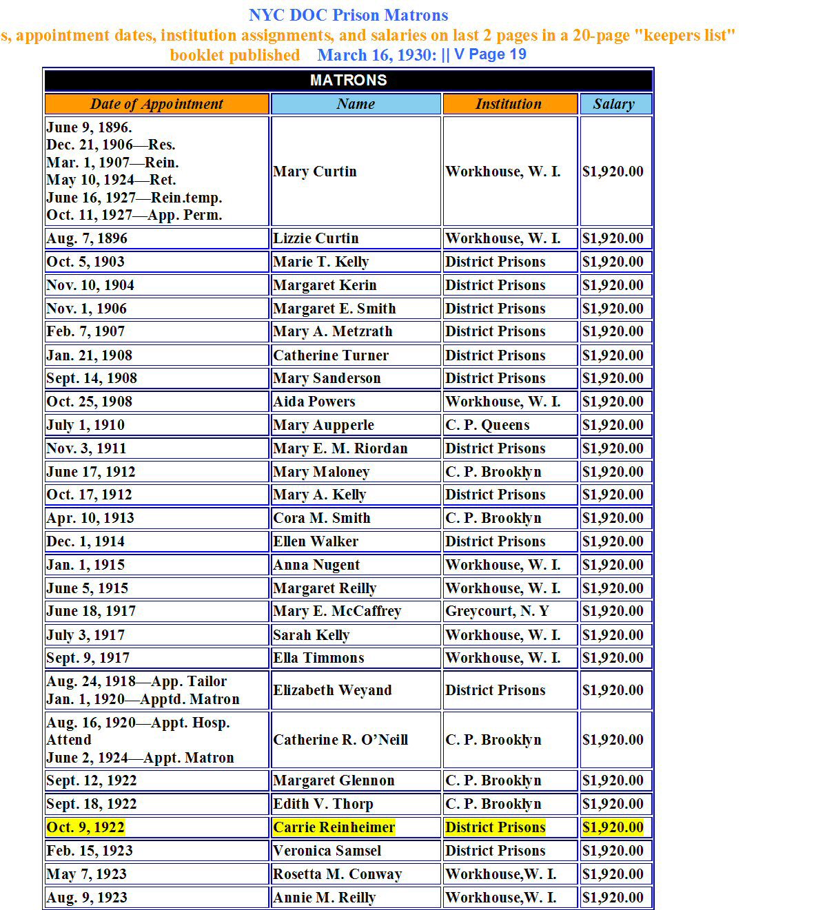 April 9, 1930 - Prison Matron.