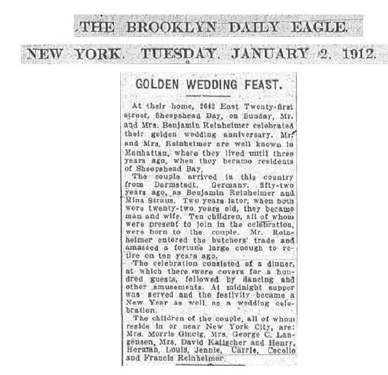 Married: Benjamin Reinheimer 1862 in New York.