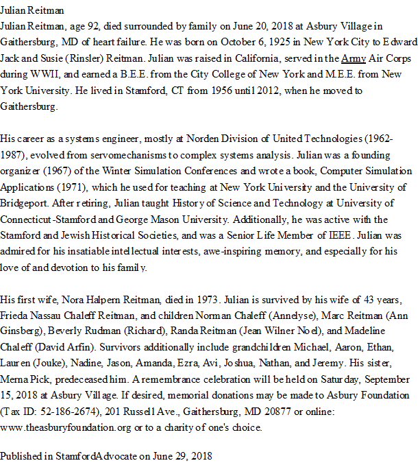 Died: June 20, 2018 in Asbury Village in Gaithersburg, Montgomery County, Maryland.