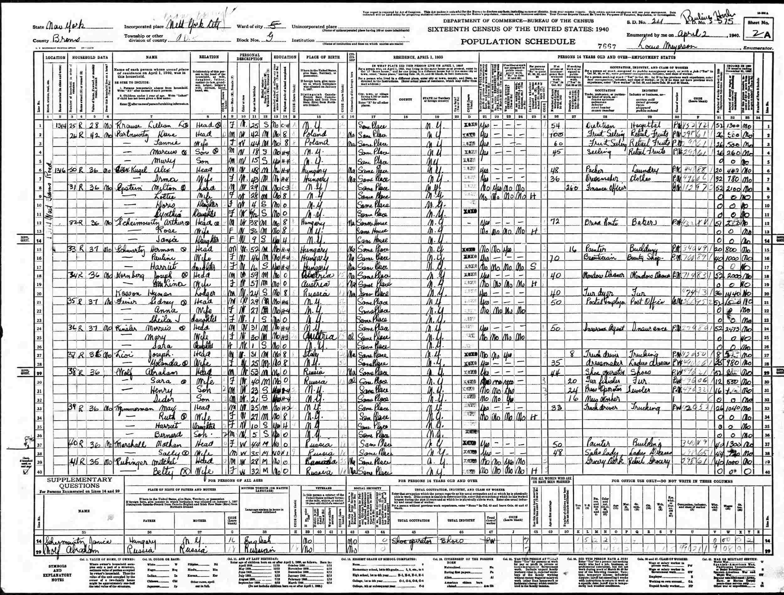 April 2, 1940 - 1314 West Farms Road, Assembly District 5, Block G, Ward 5, Supervisor's District 24, Enumeration District 3-575, Bronx, New York.