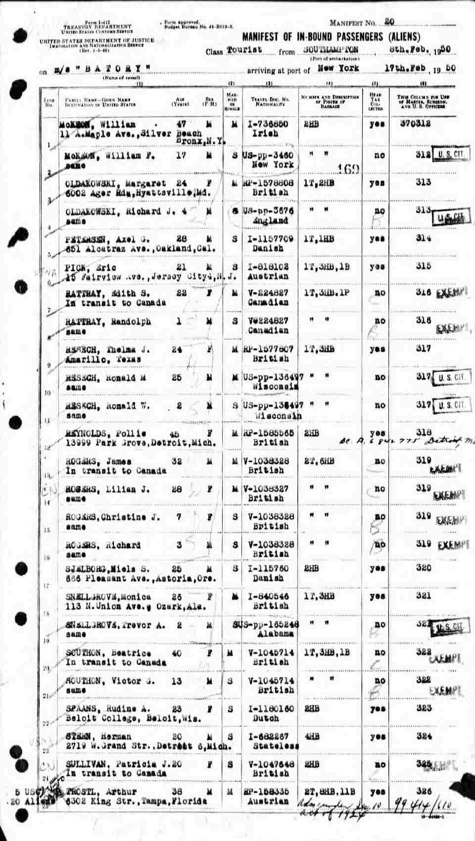 1950 Ship Manifest