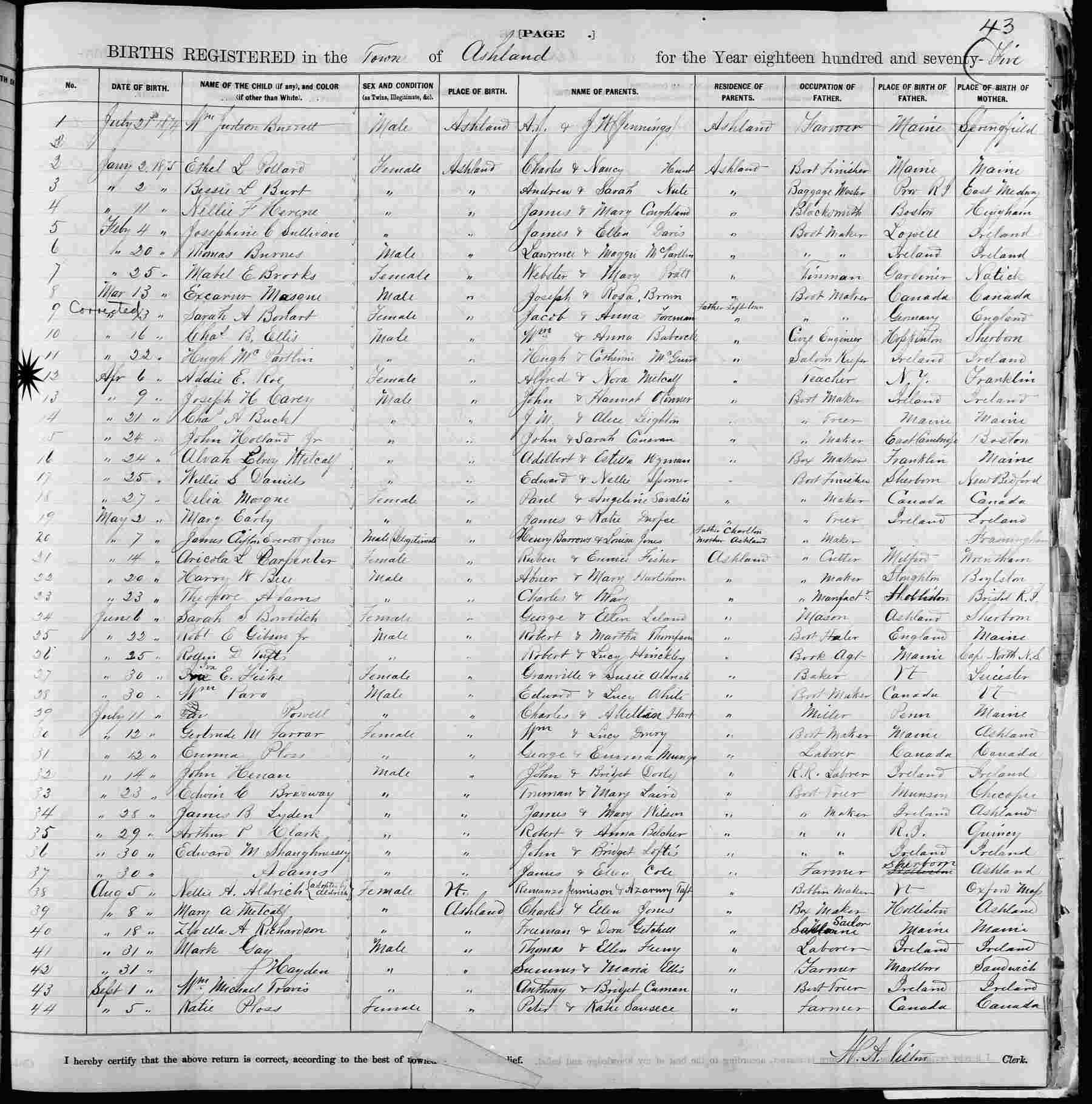 Notes for ADELIADE ESTELLE "ADDIE" ROE: Daughter of Alfred Seelye and Nora Ardelia (Metcalf) Roe. Born: April 6, 1875 in Ashland, Middlesex County, Massachusetts. Died: February 24, 1878 in Ashland, Middlesex County, Massachusetts.